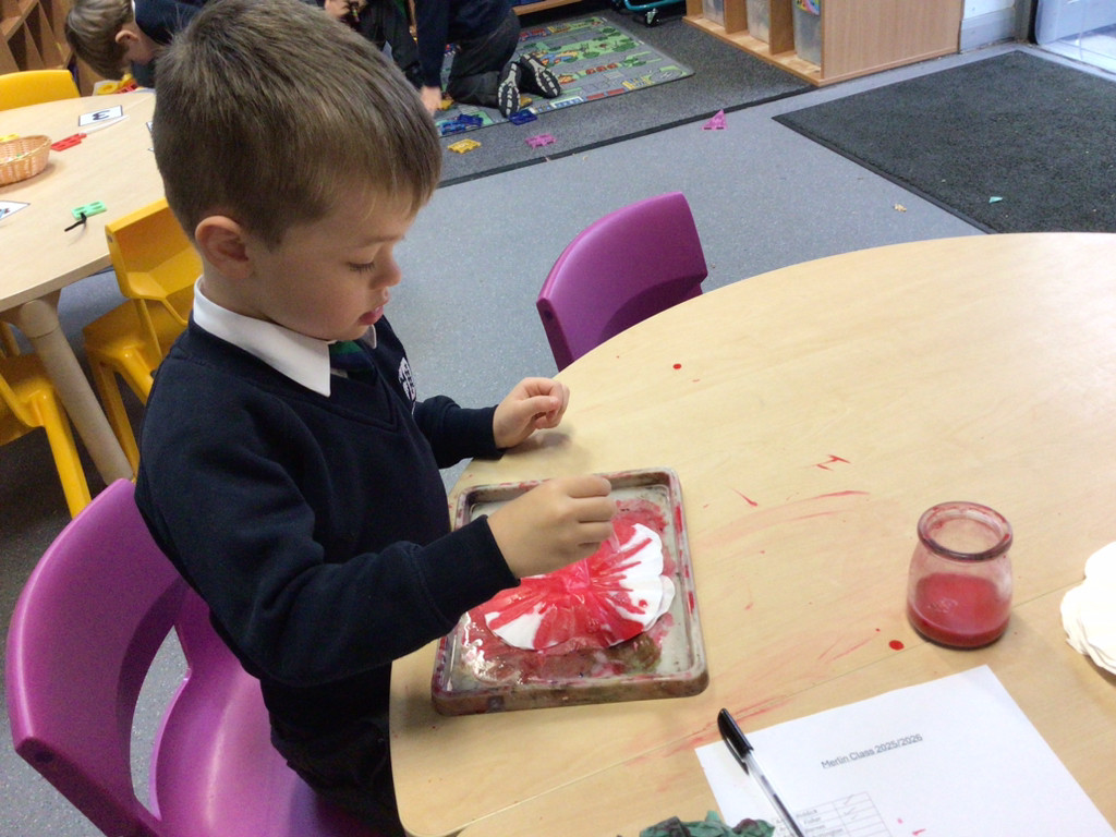 This week has also been busy with lots of celebrations. The children have learnt about Diwali and enjoyed engaging in some Diwali themed enhanced provision. We have also marked Bonfire Night with the children having lots of fun creating their own firework artwork (we think they look fabulous!). We have also began painting some poppies, which we look forward to 'planting' next week for Remembrance Day.
