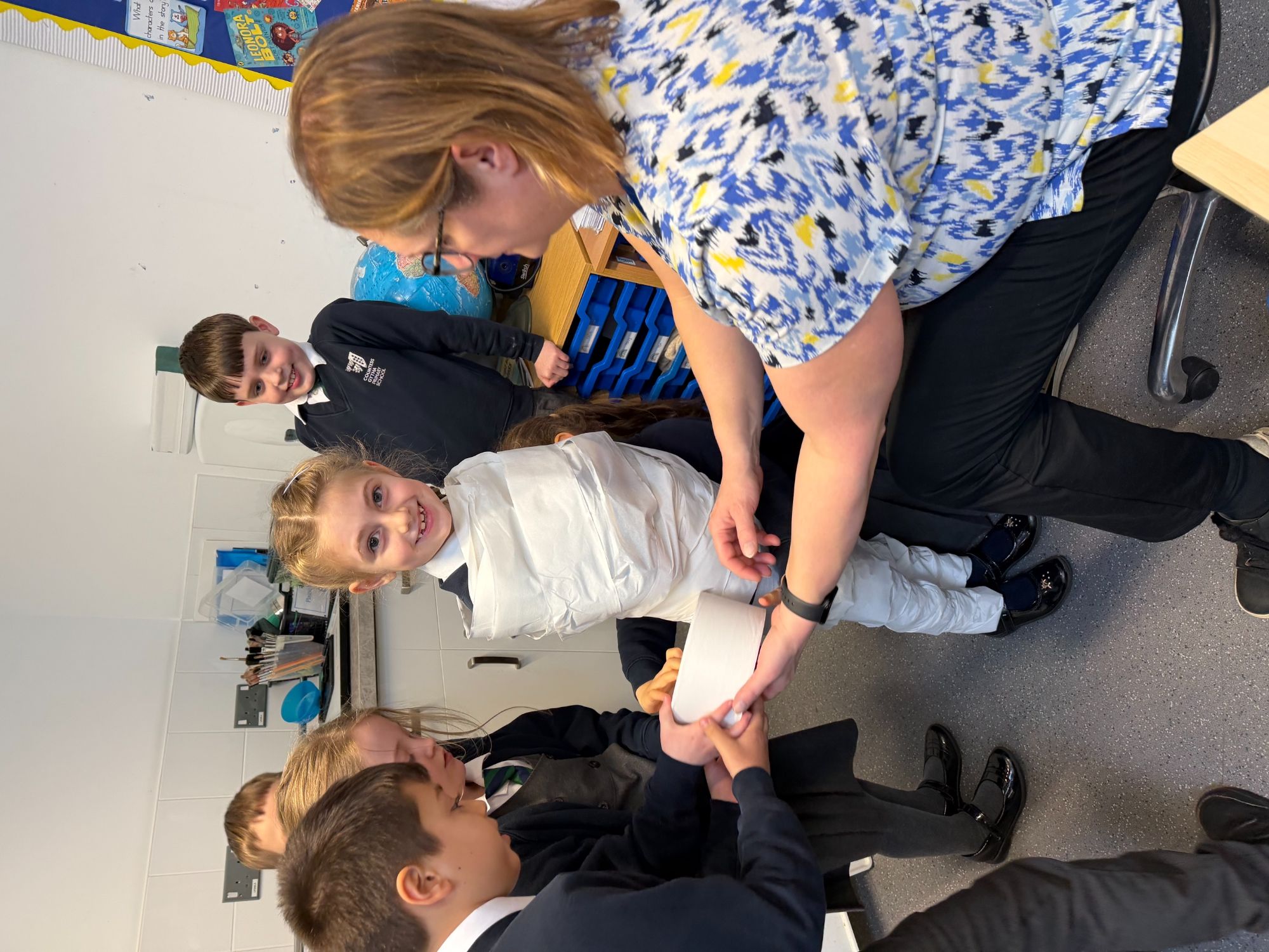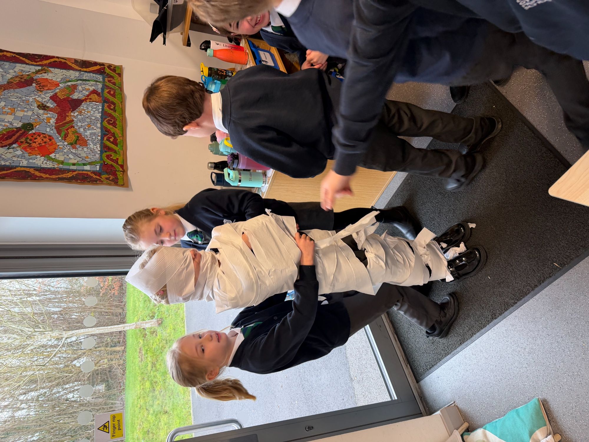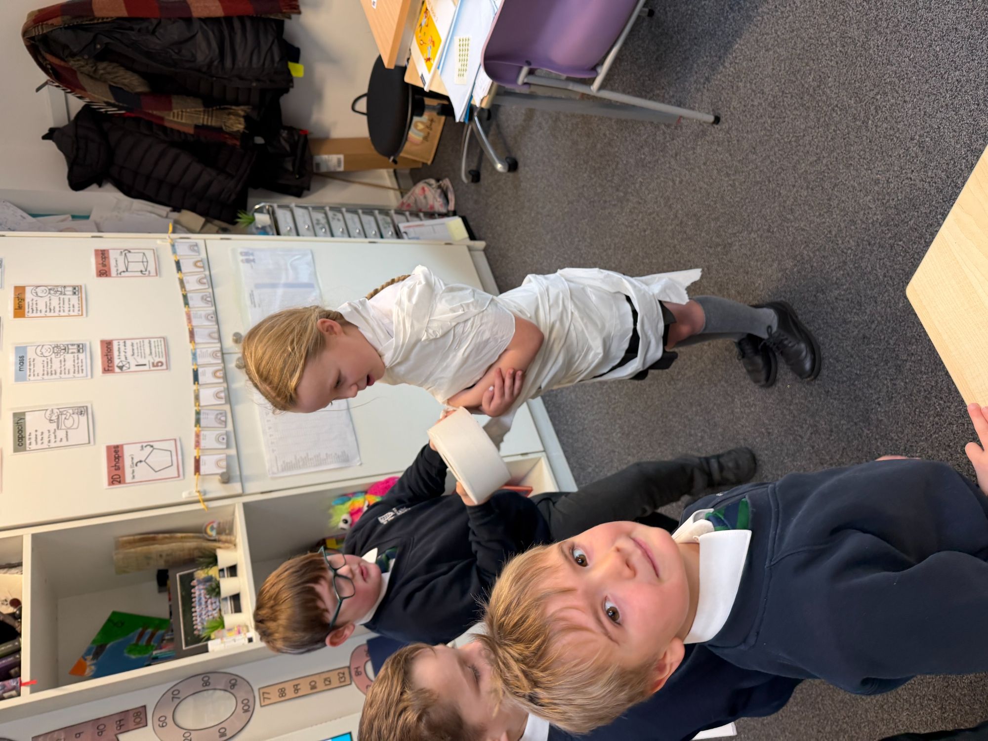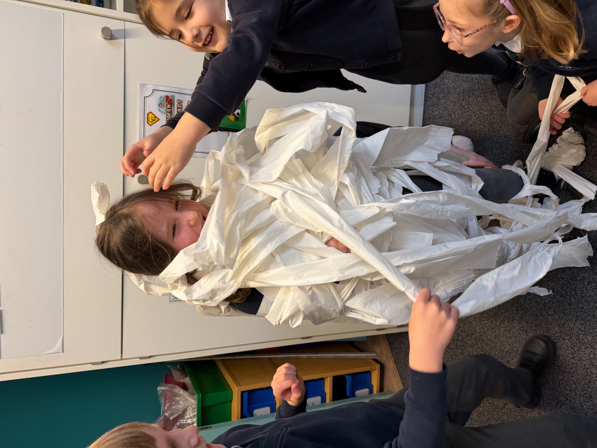This week, as part of our Ancient Egyptians topic, King Arthur Class are exploring the process of mummification. The children will be writing a set of instructions outlining the steps involved, and to support their understanding, they took part in a mummification race. Working in teams, the children raced to “mummify” their candidate, with the first house to complete the task declared the winner!