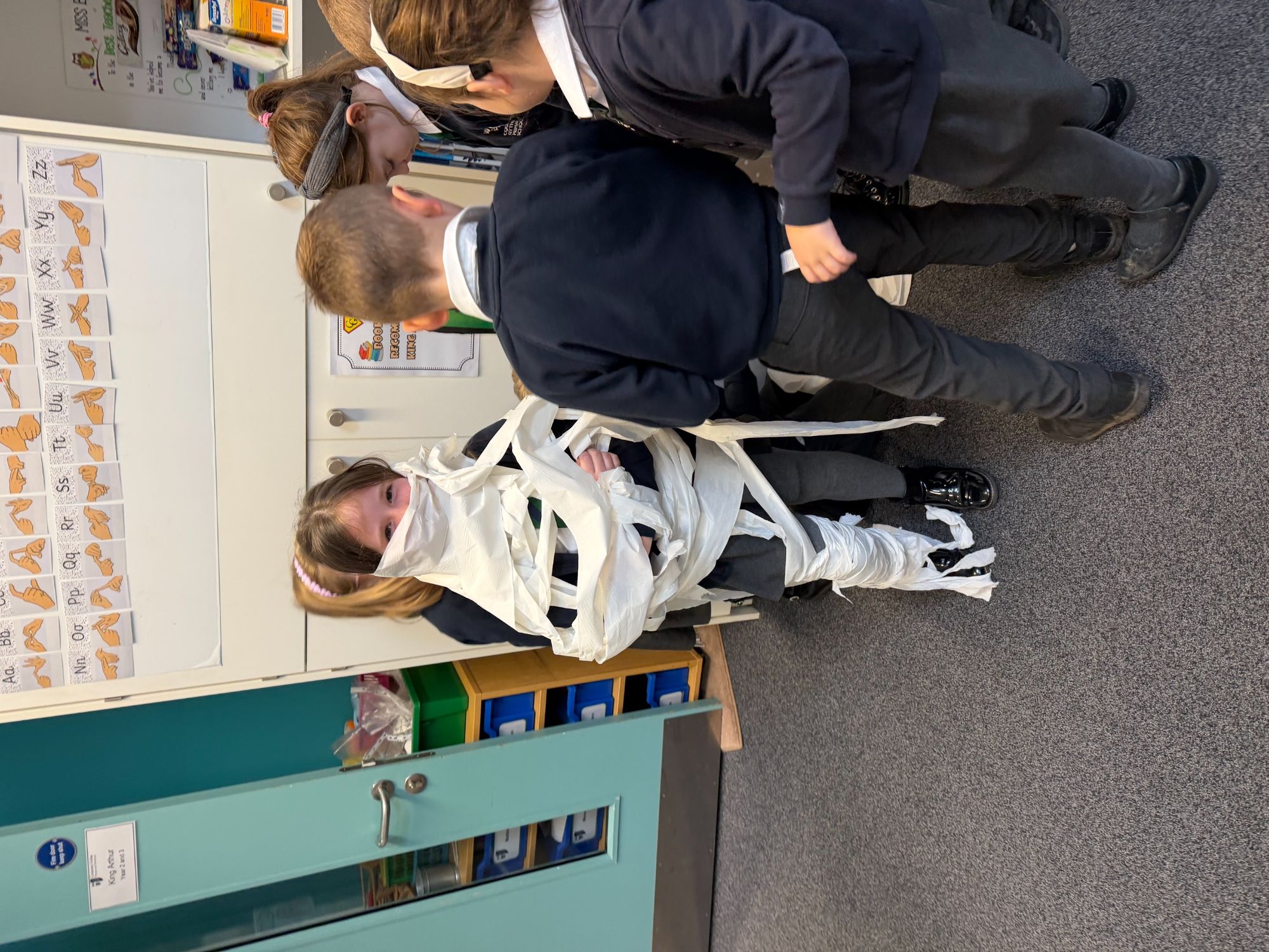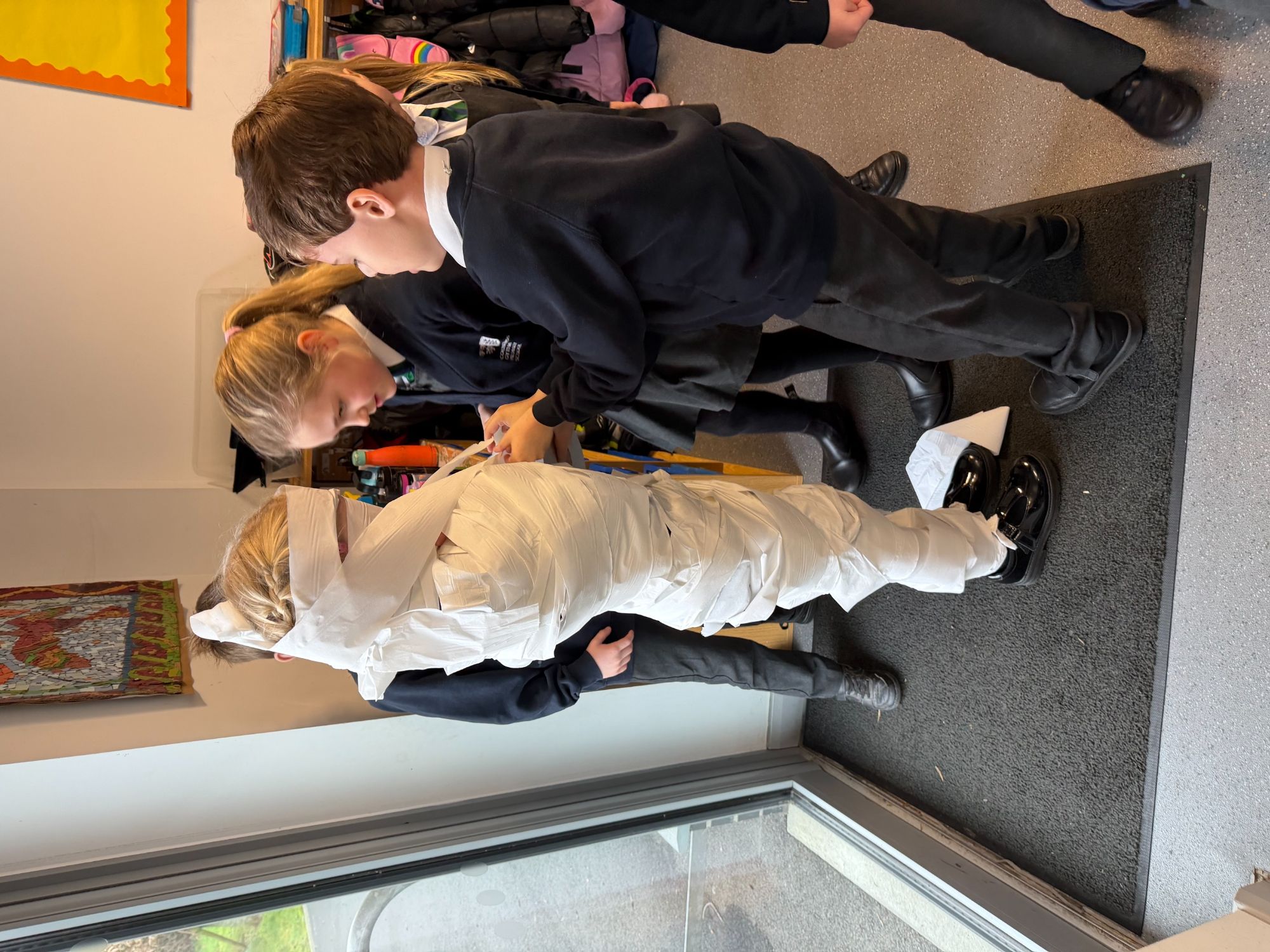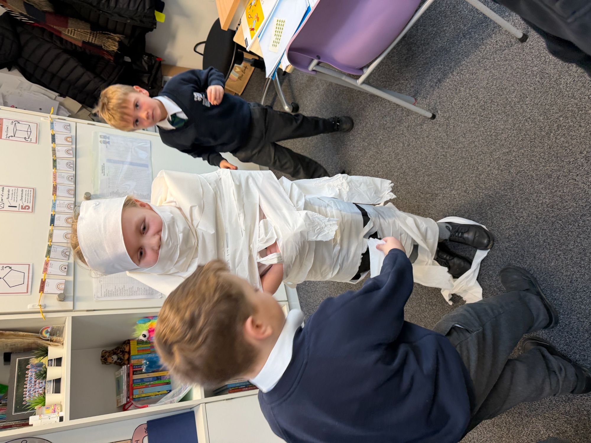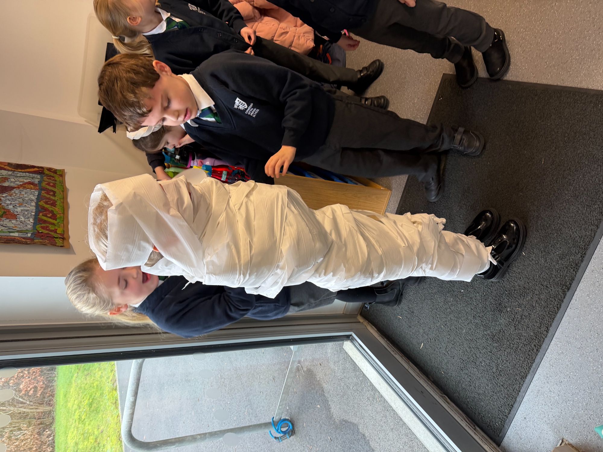 This week, as part of our Ancient Egyptians topic, King Arthur Class are exploring the process of mummification. The children will be writing a set of instructions outlining the steps involved, and to support their understanding, they took part in a mummification race. Working in teams, the children raced to “mummify” their candidate, with the first house to complete the task declared the winner!