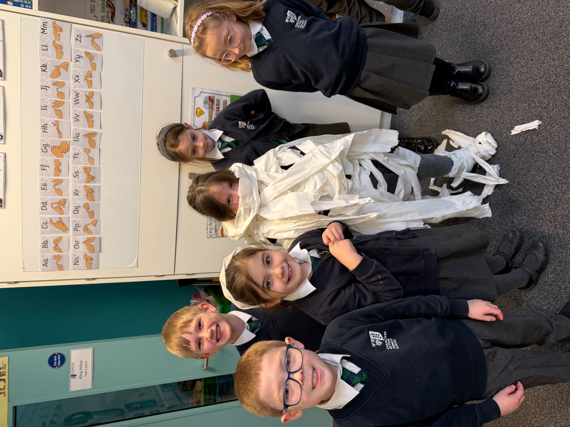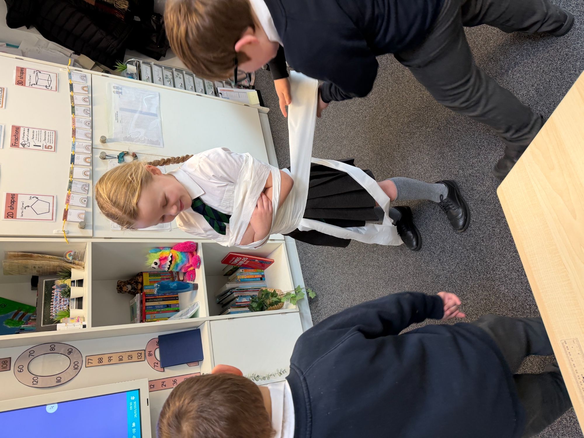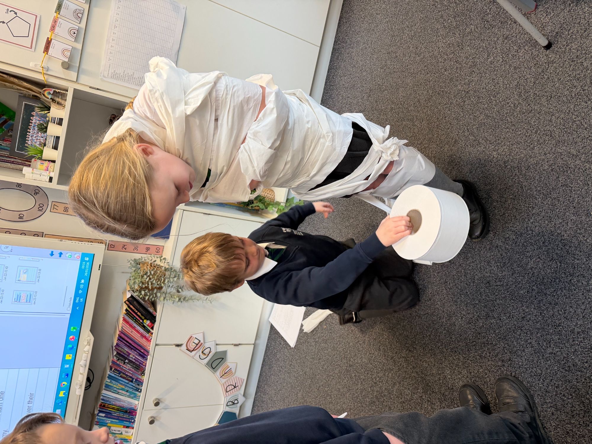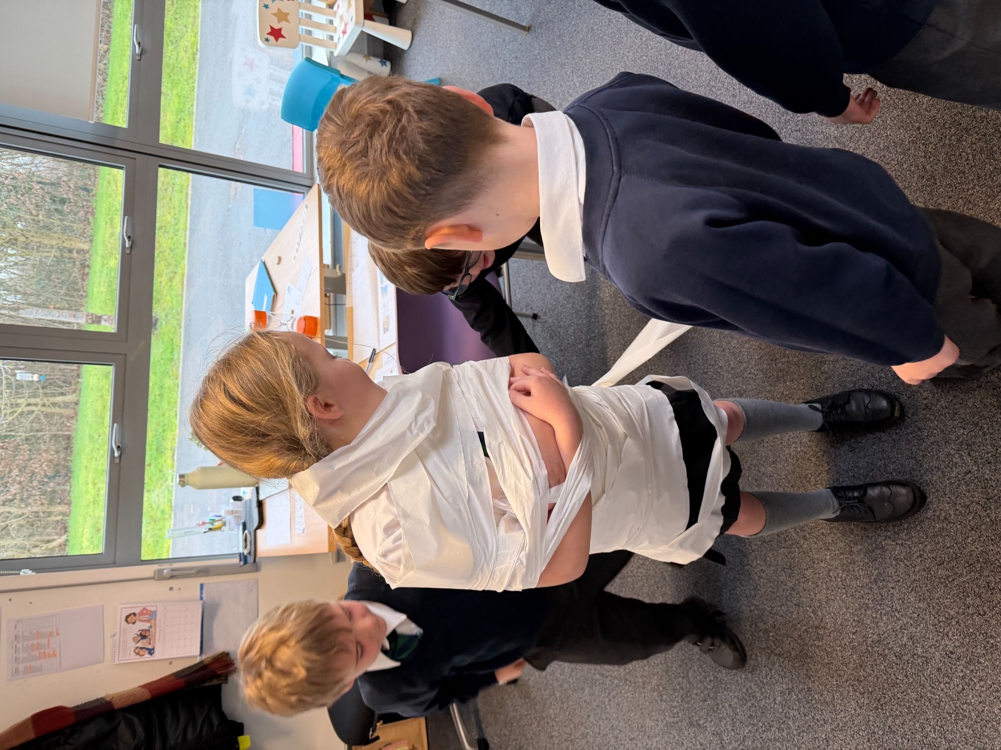 This week, as part of our Ancient Egyptians topic, King Arthur Class are exploring the process of mummification. The children will be writing a set of instructions outlining the steps involved, and to support their understanding, they took part in a mummification race. Working in teams, the children raced to “mummify” their candidate, with the first house to complete the task declared the winner!