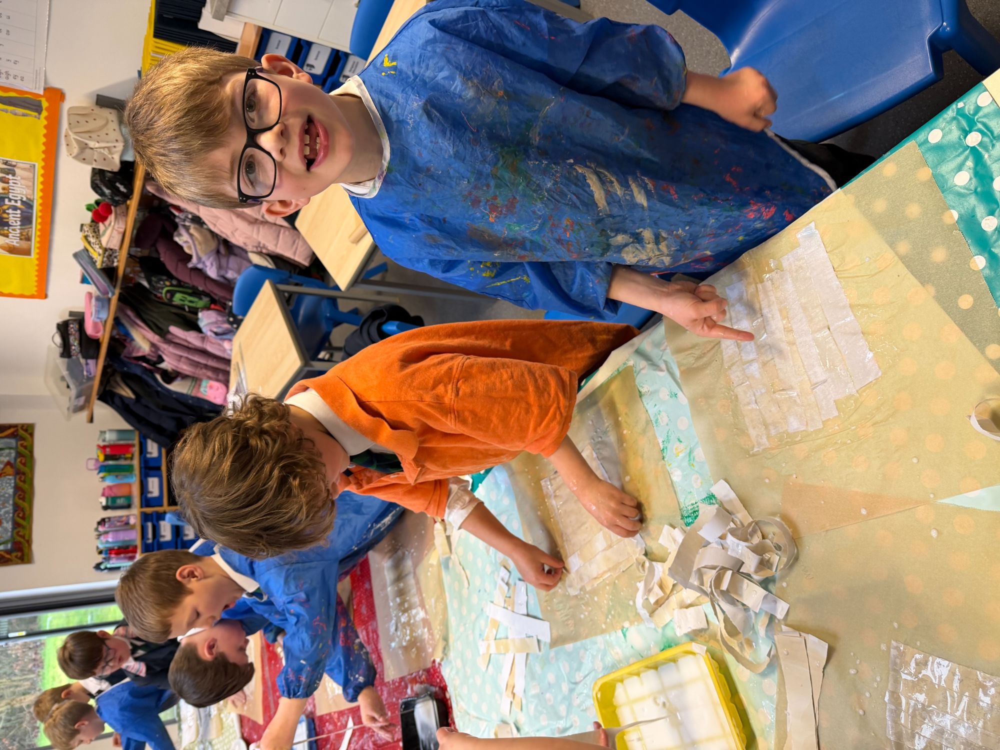 Linked to our history topic, the children have been exploring the Ancient Egyptians, focusing on the designs, patterns and techniques used during this fascinating period. This week, the children created their own papyrus paper, using modern resources while following the same techniques used in Ancient Egypt. Although the process was messy and wonderfully sticky, we were delighted with the results and the children’s enthusiasm throughout!