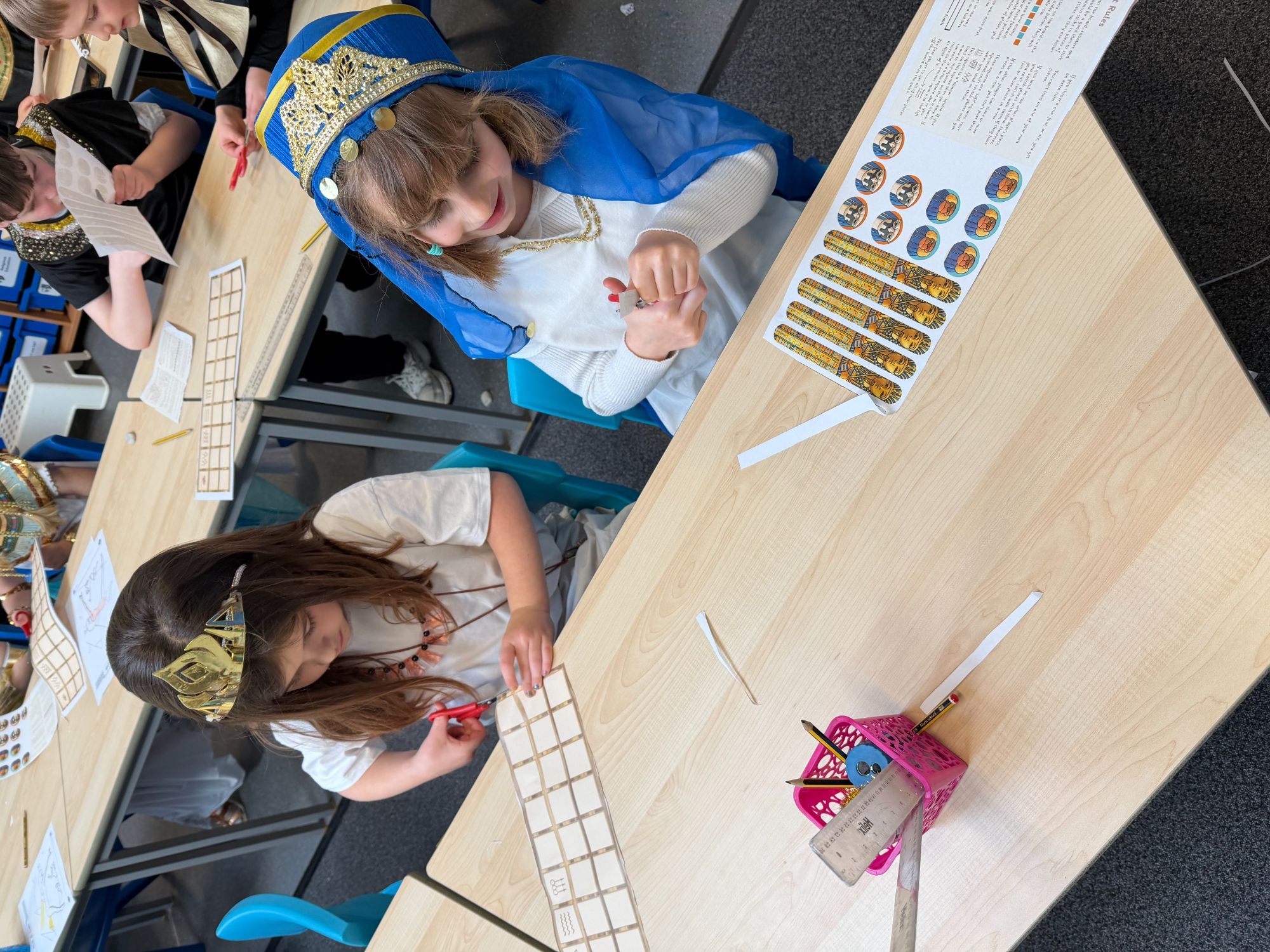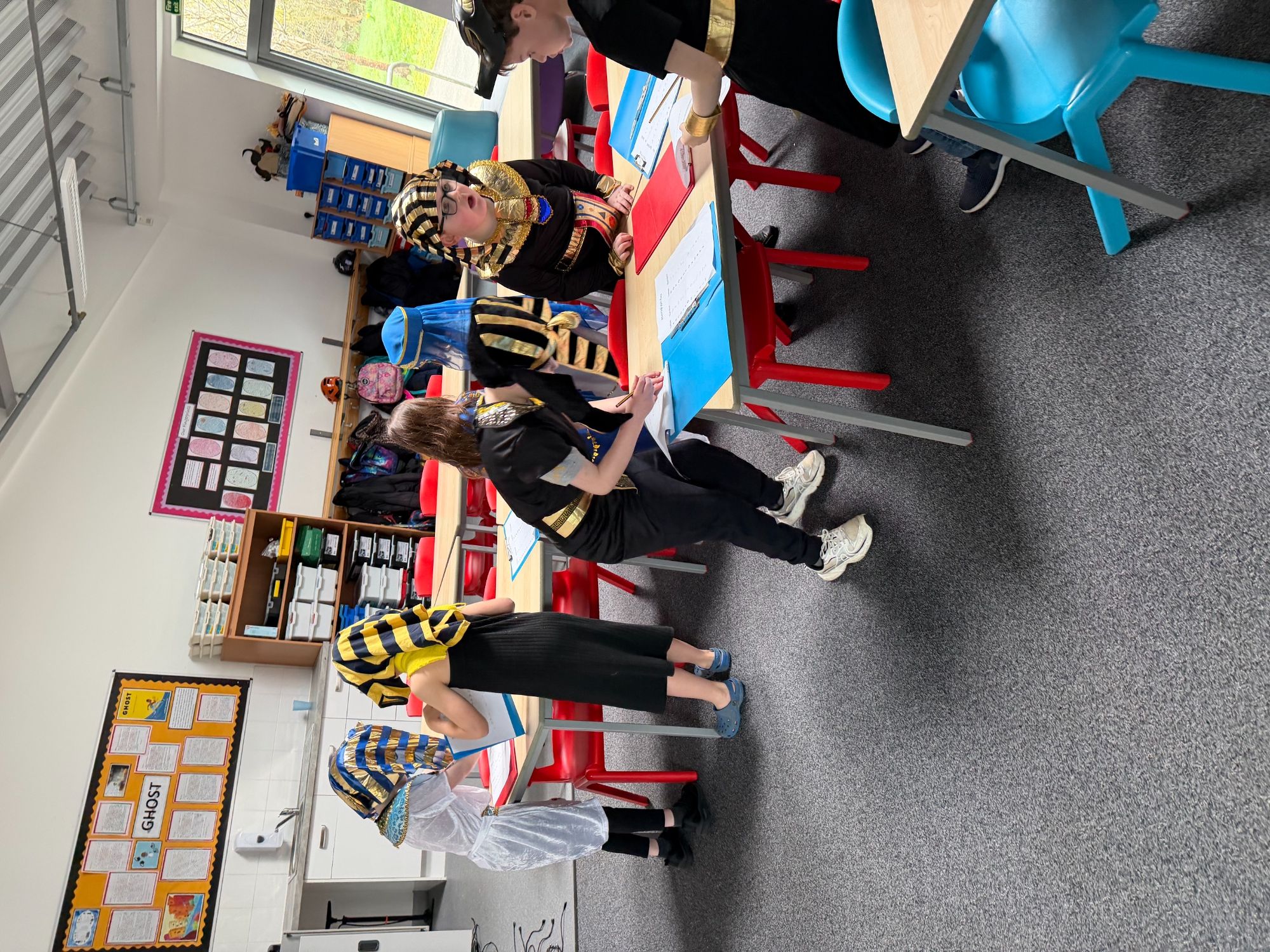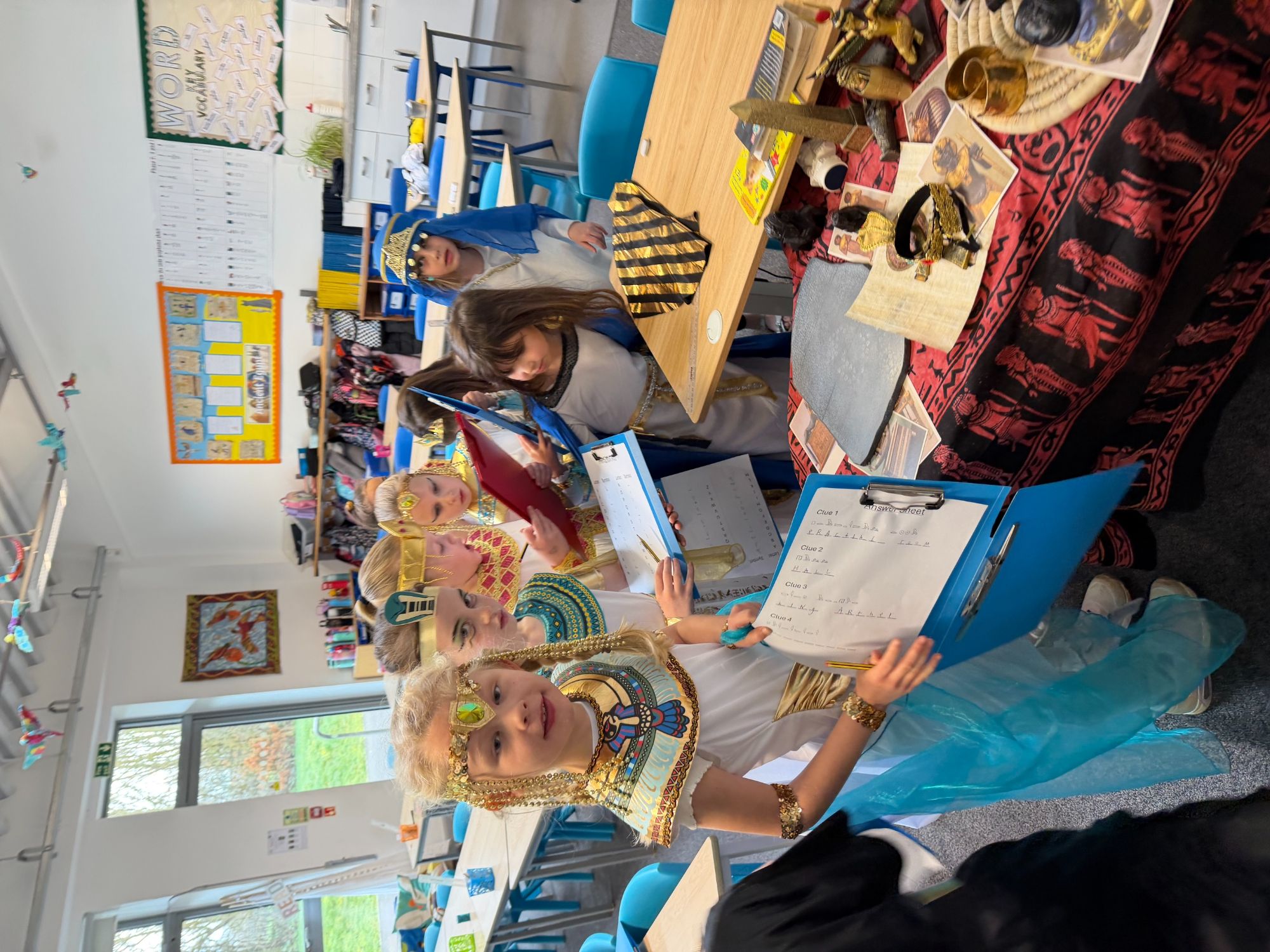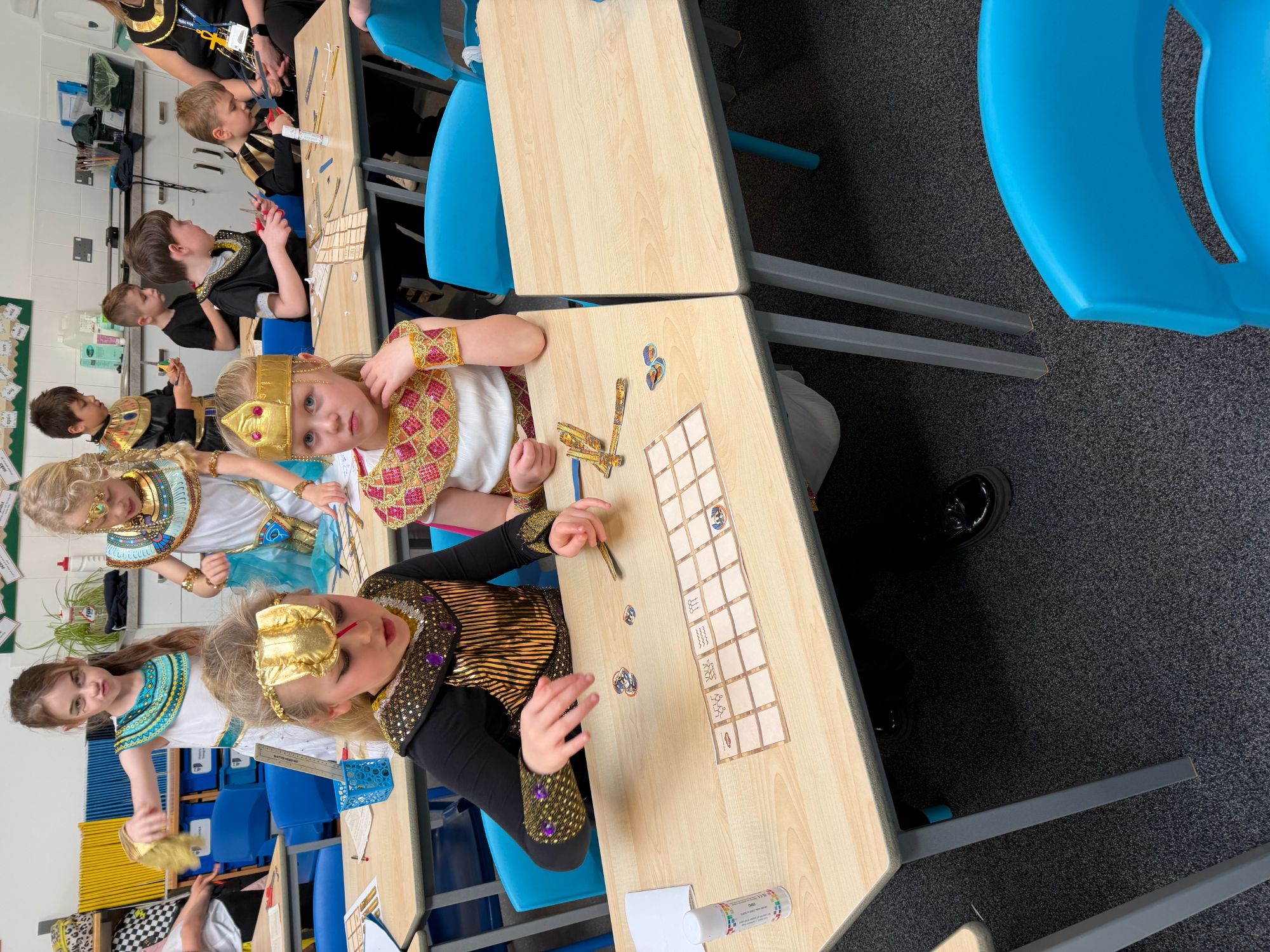 Today, our classroom was transformed as we stepped back in time to the fascinating world of Ancient Egypt! The children arrived in wonderful costumes, dressing as powerful pharaohs, magnificent gods and goddesses, mysterious mummies, and hardworking Egyptian farmers. It was fantastic to see such creativity and enthusiasm on display.