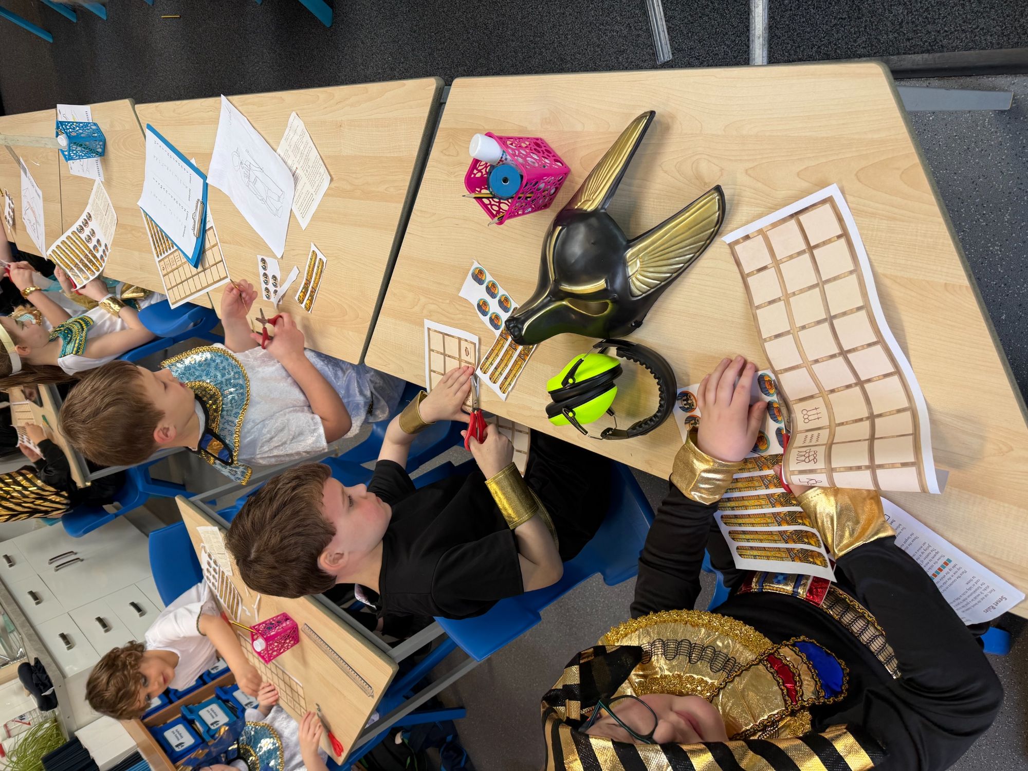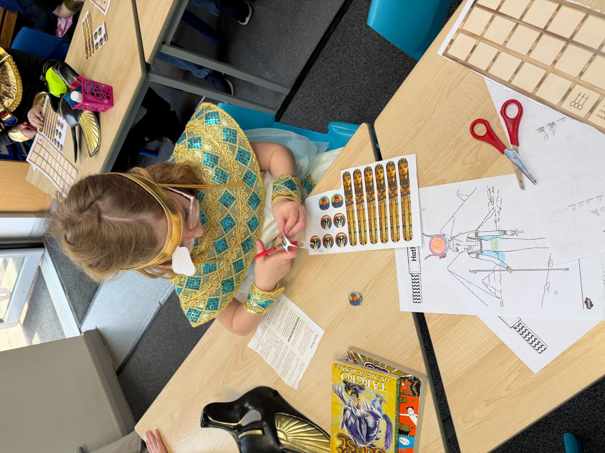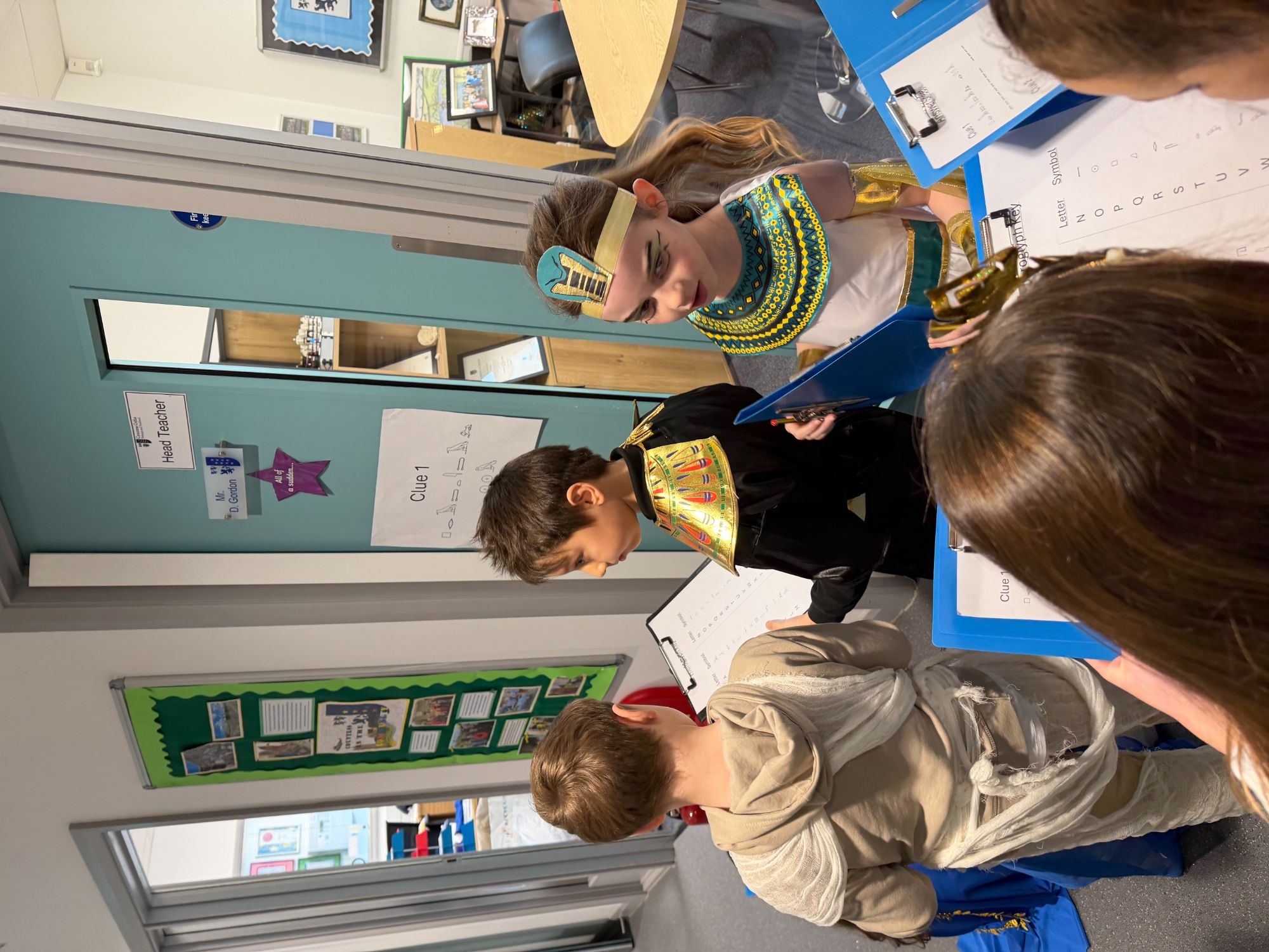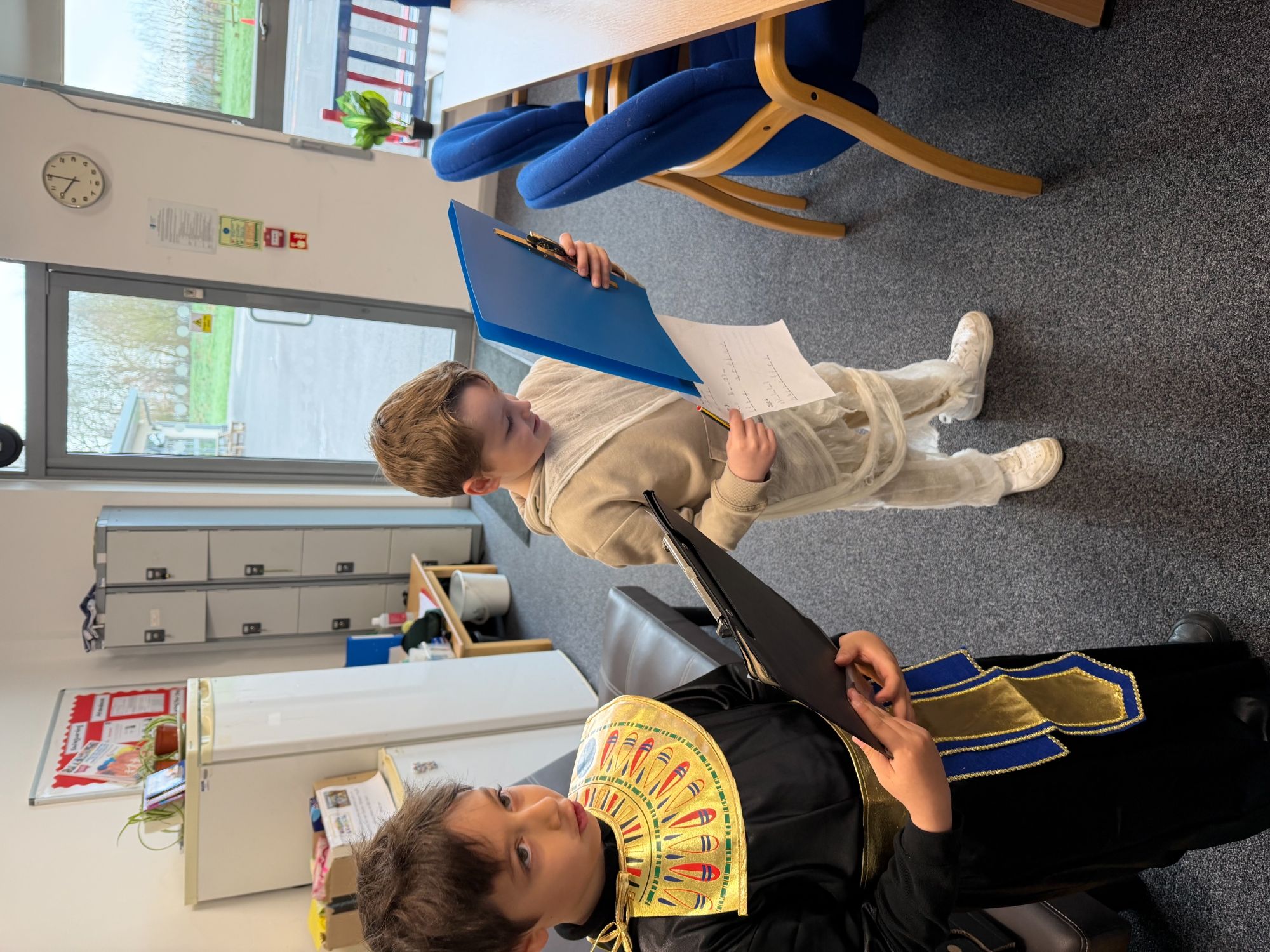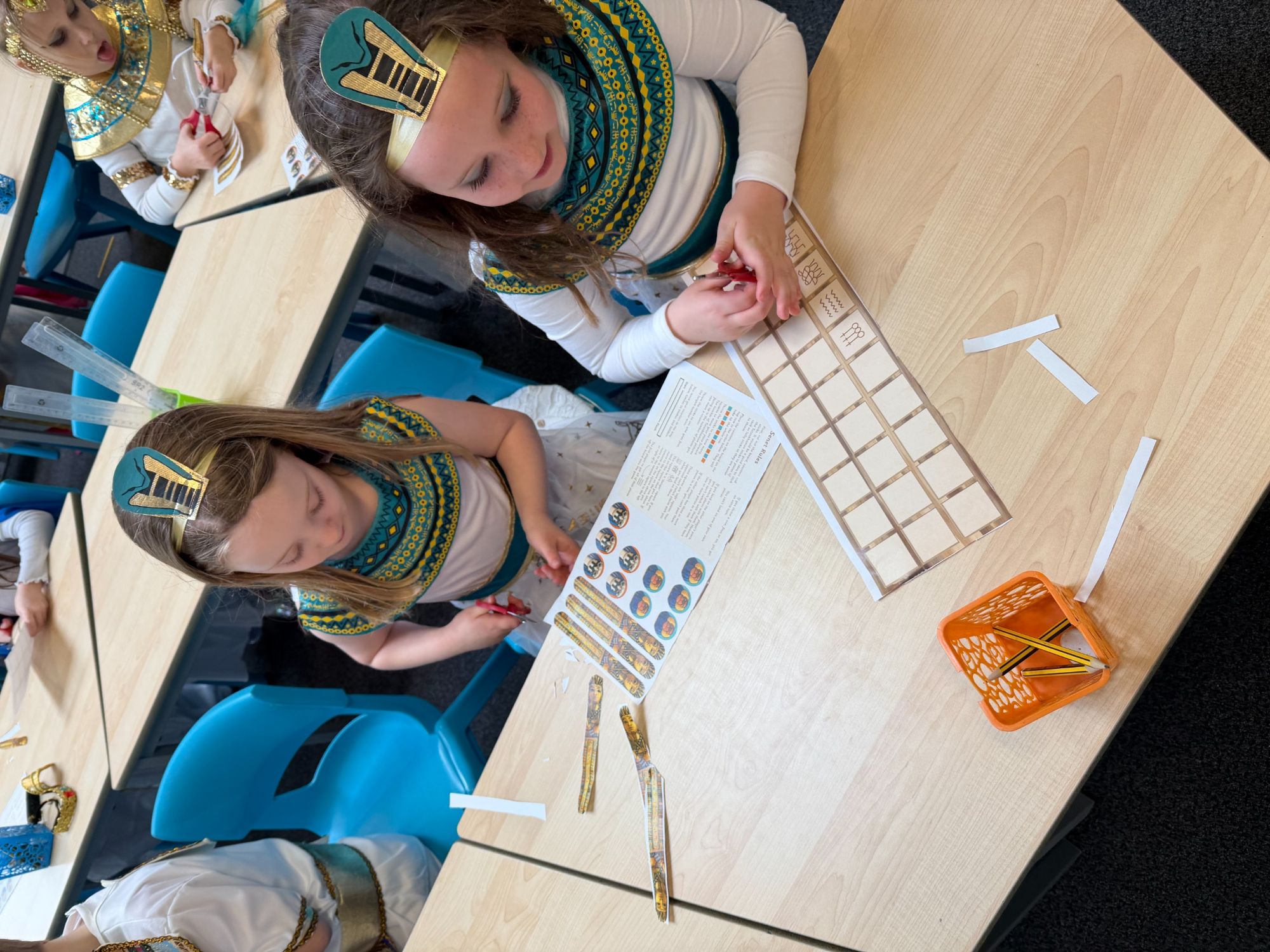 Today, our classroom was transformed as we stepped back in time to the fascinating world of Ancient Egypt! The children arrived in wonderful costumes, dressing as powerful pharaohs, magnificent gods and goddesses, mysterious mummies, and hardworking Egyptian farmers. It was fantastic to see such creativity and enthusiasm on display.