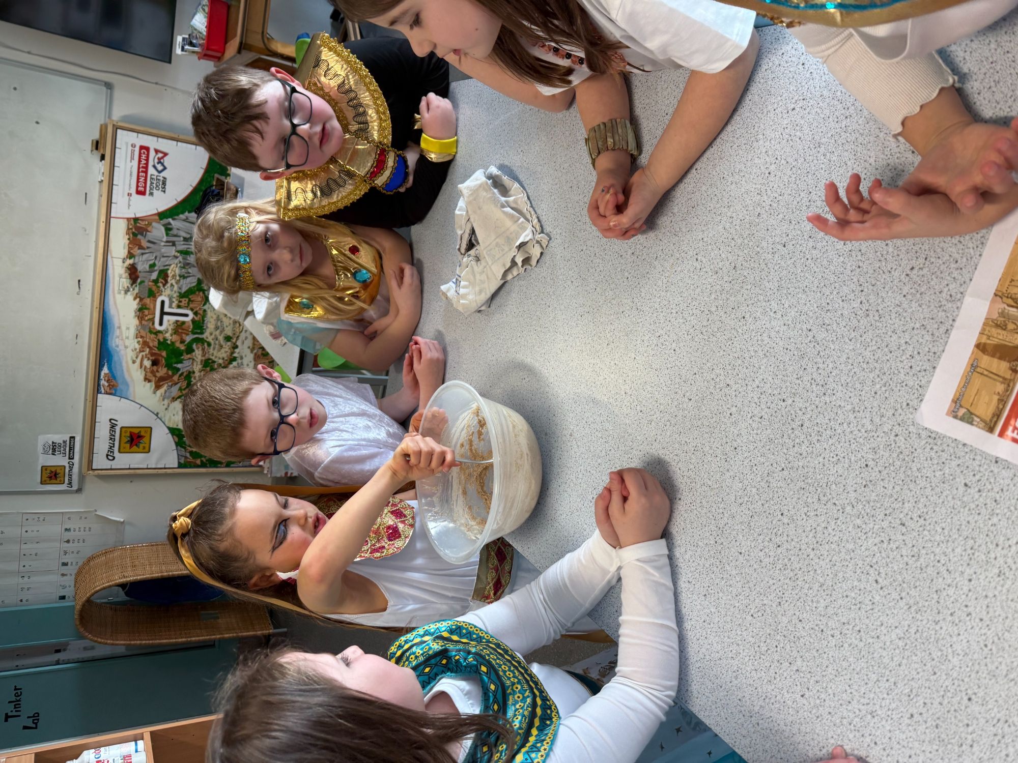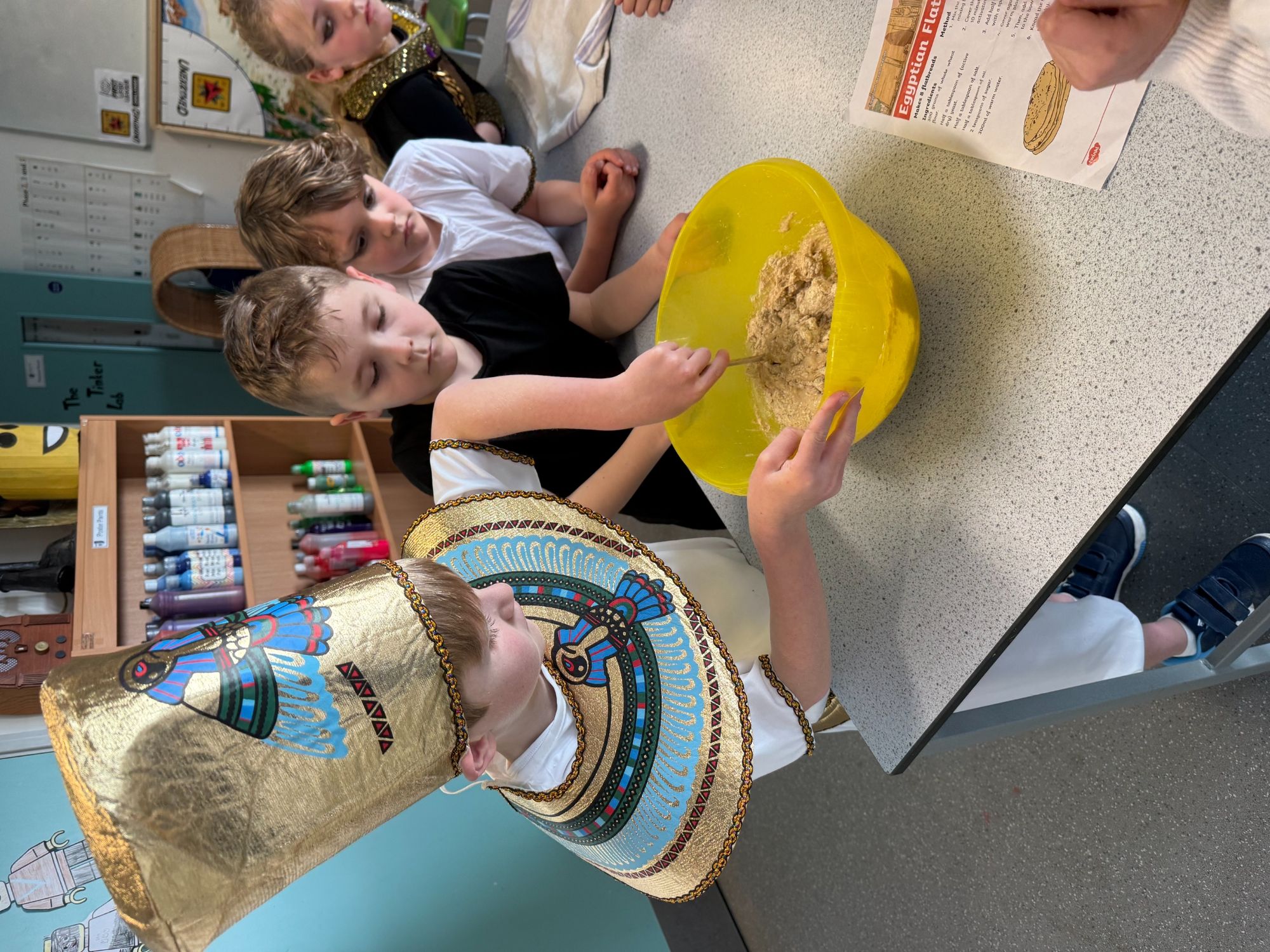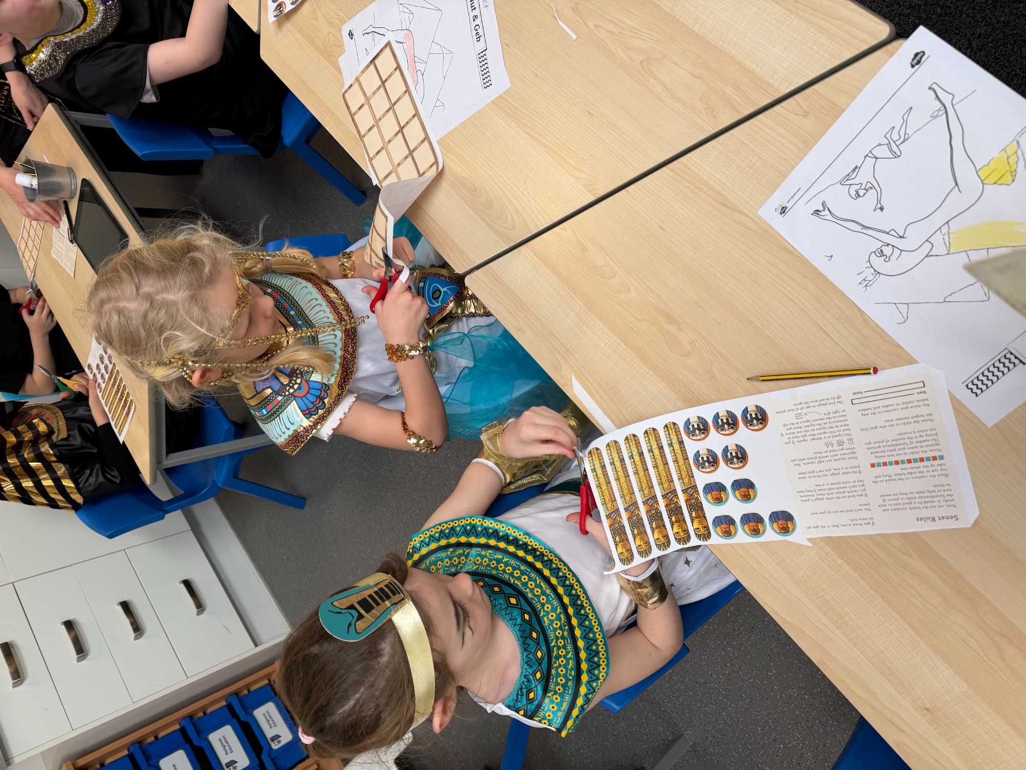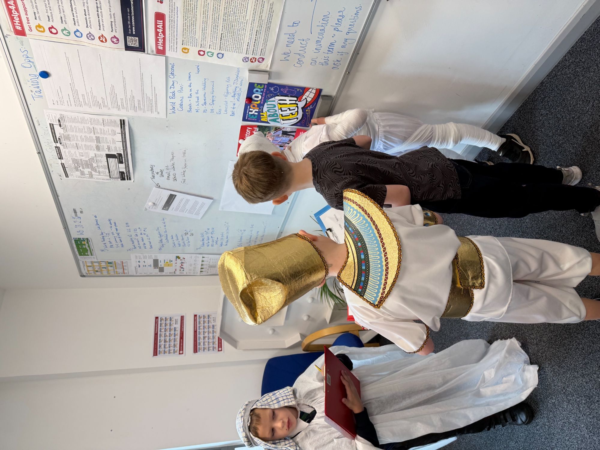 Today, our classroom was transformed as we stepped back in time to the fascinating world of Ancient Egypt! The children arrived in wonderful costumes, dressing as powerful pharaohs, magnificent gods and goddesses, mysterious mummies, and hardworking Egyptian farmers. It was fantastic to see such creativity and enthusiasm on display.