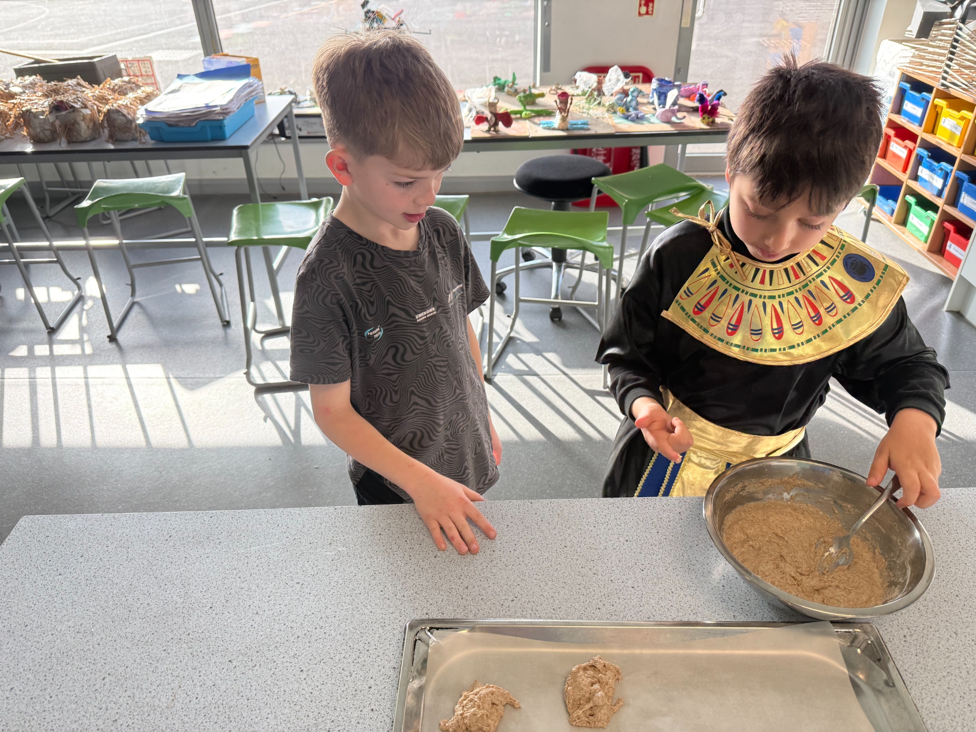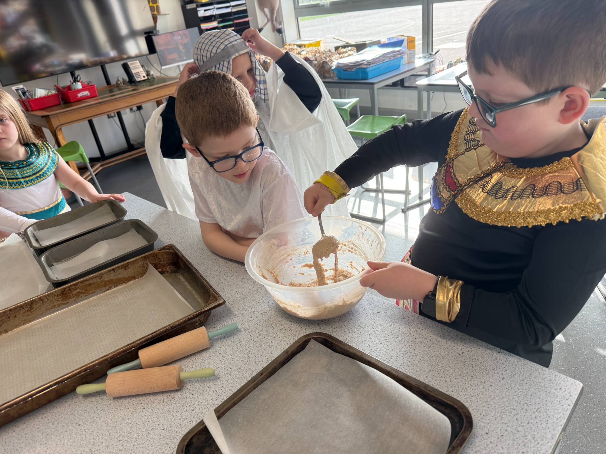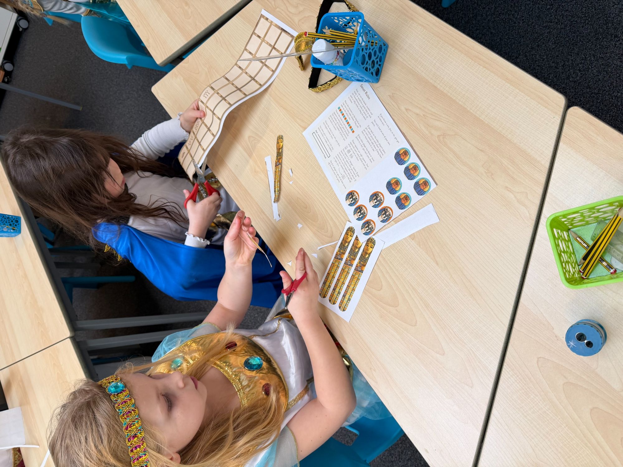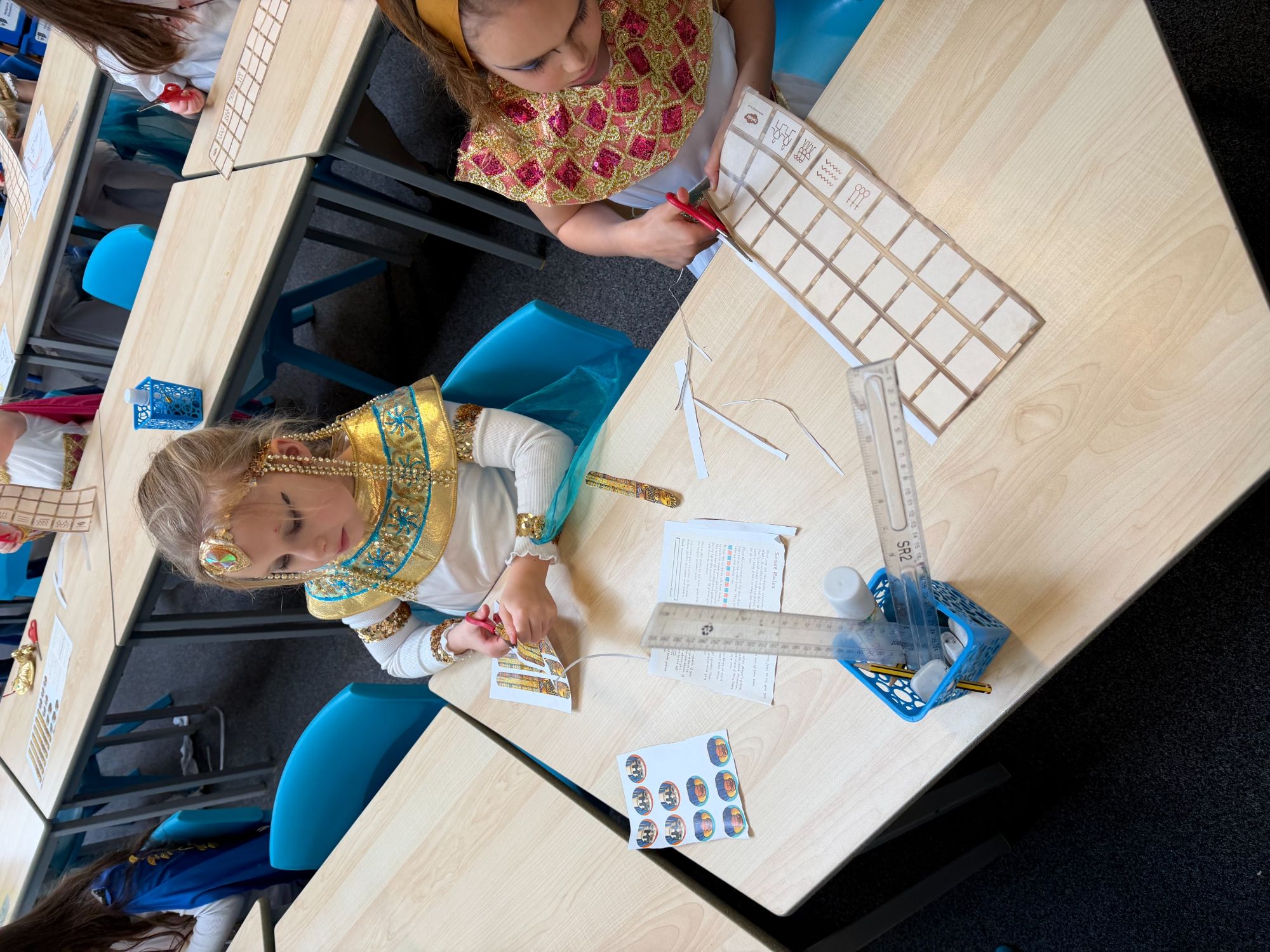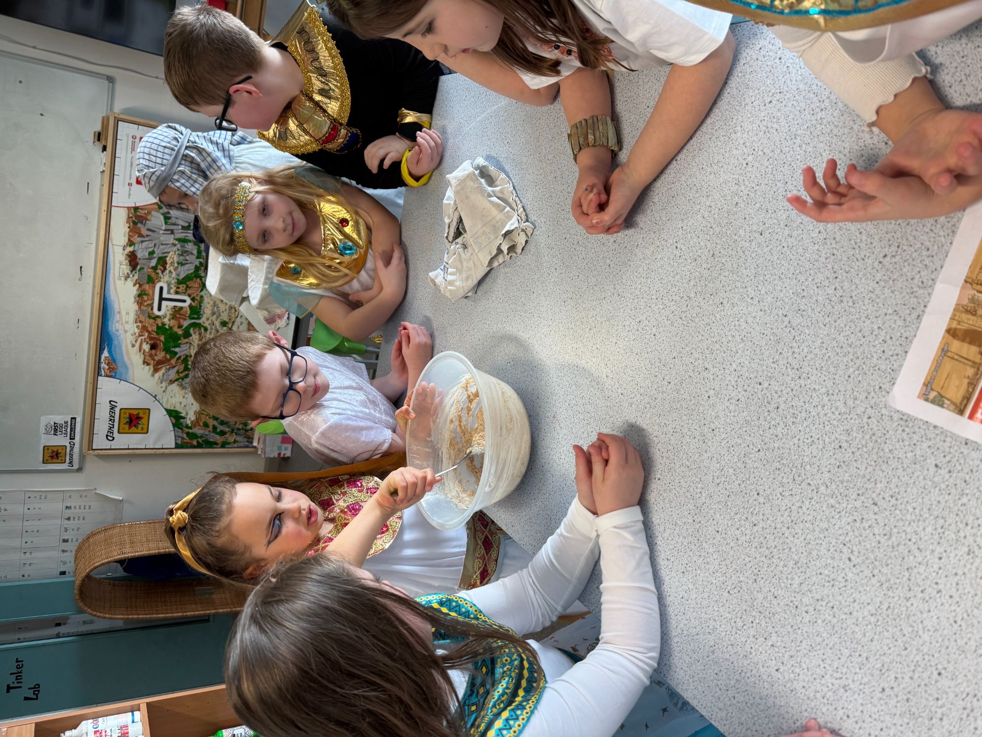 Today, our classroom was transformed as we stepped back in time to the fascinating world of Ancient Egypt! The children arrived in wonderful costumes, dressing as powerful pharaohs, magnificent gods and goddesses, mysterious mummies, and hardworking Egyptian farmers. It was fantastic to see such creativity and enthusiasm on display.
