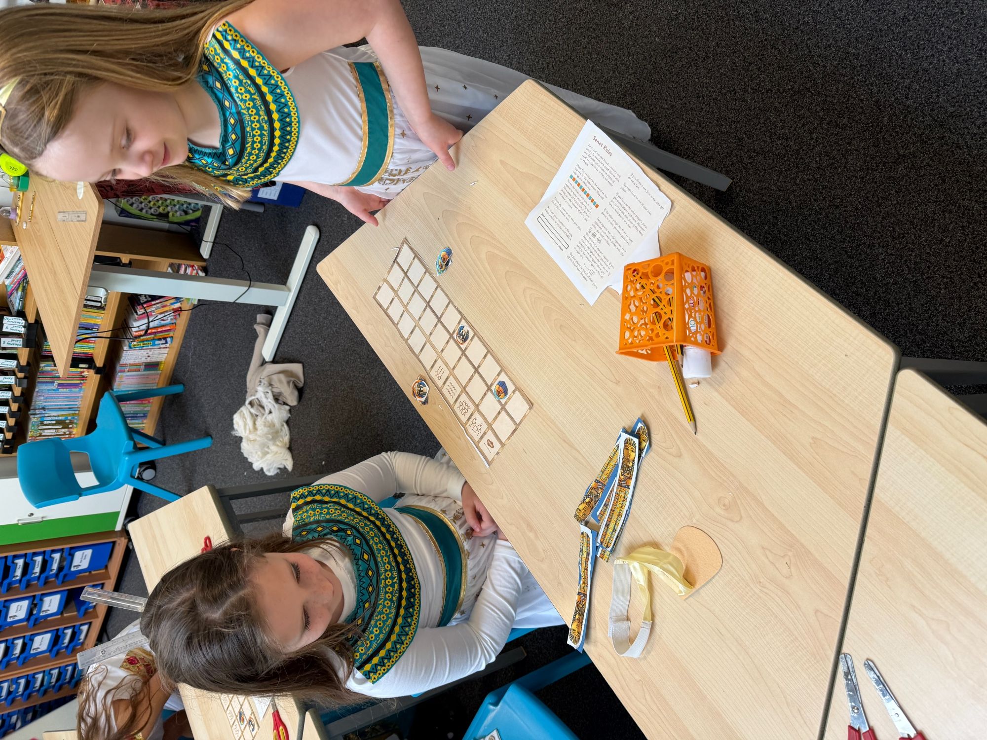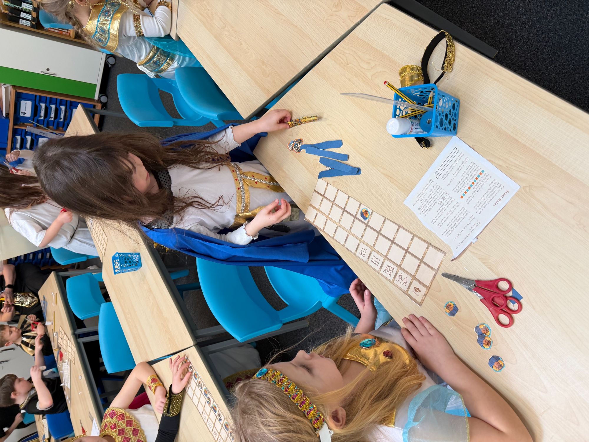 Throughout the day, we immersed ourselves in hands-on learning. The children took part in an exciting “Crack the Hieroglyphic Code” activity, racing around the school to solve clues and decipher ancient symbols. They also designed and played traditional Egyptian board games, including the popular game of Senet, just as people would have done thousands of years ago.