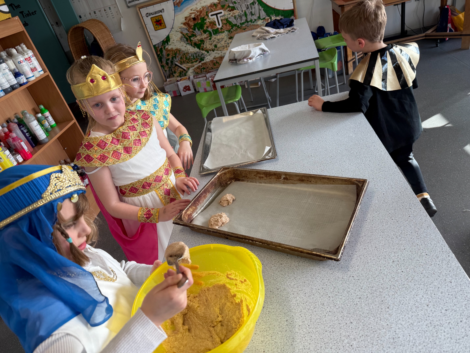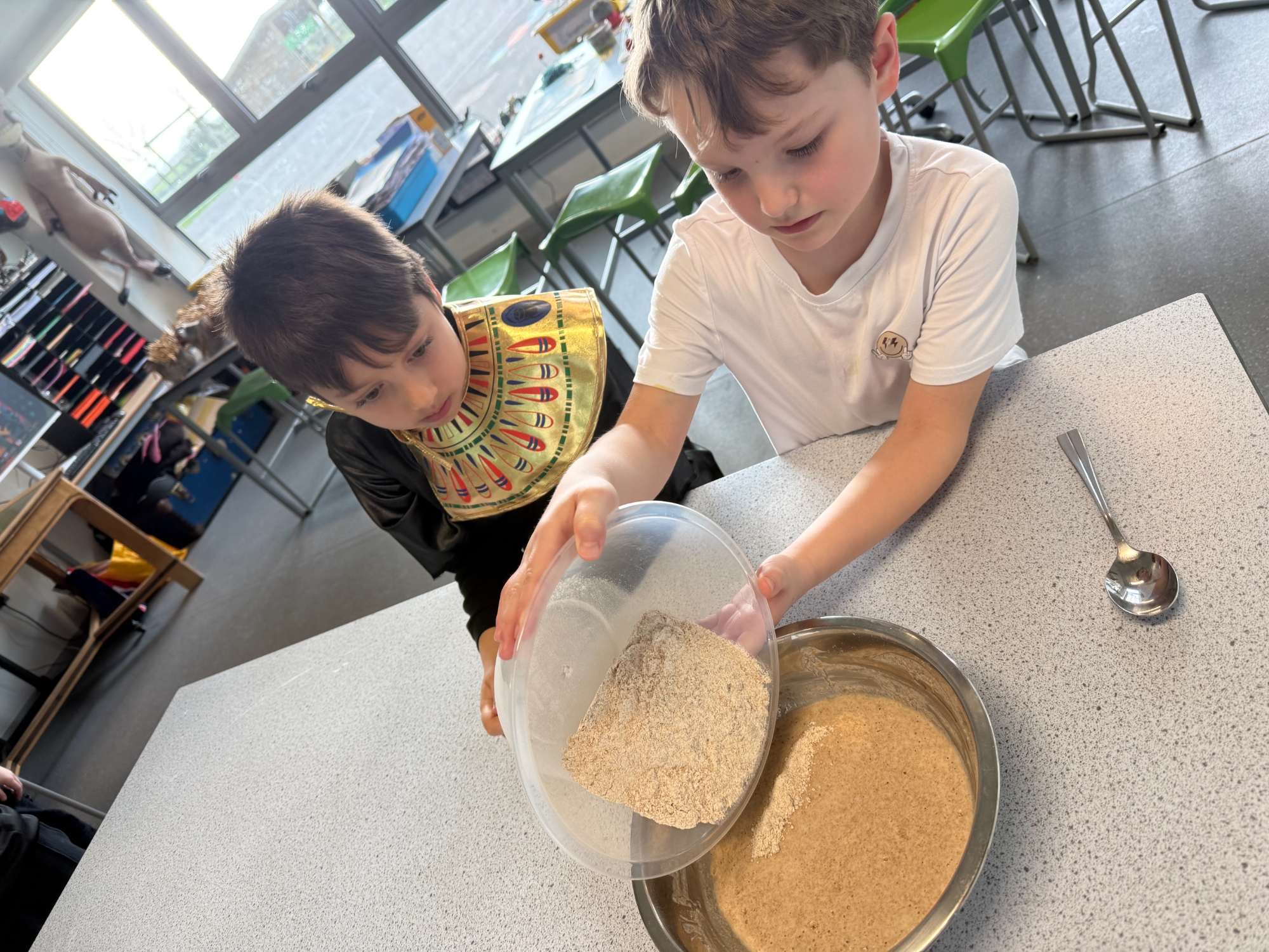 In addition, we followed a traditional Egyptian flatbread recipe, enjoying our freshly made bread dipped in delicious local honey. The children also had the opportunity to explore and taste other traditional foods from the era, deepening their understanding of daily life in ancient times.
