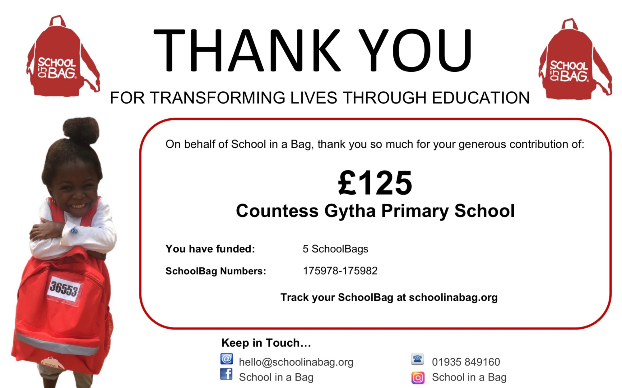 Through fantastic teamwork and enthusiasm, our School Council successfully raised enough money to purchase five fully equipped school bags. Each bag is packed with essential learning resources and will be sent to children who may otherwise have limited access to education.